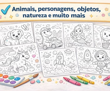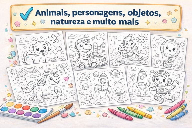 Você vai ter acesso a um conjunto completo de desenhos para colorir, criados especialmente para: