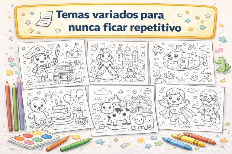 Centenas de desenhos temáticos para nunca faltar novidade ao colorir.